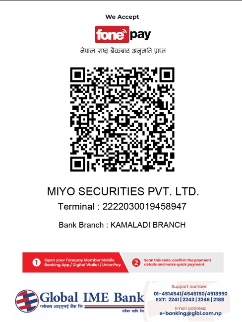 Miyo Securities Pvt. Ltd. is Nepal’s emerging stock broker majorly promoted by a group of Chartered Accountants and experts in business fields. Licensed by SEBON on May 23, 2023 Miyo started its trading operations on 13th July, 2023. Located centrally at Hattisar, Miyo provides stock brokerage and Depository services. Our Management team consists of Chartered Accountants and experts in the field of capital market. We are committed to provide quality brokerage service backed by a dedicated team of professionals. Miyo believes in client satisfaction, so we always put clients first and value your time and investments.